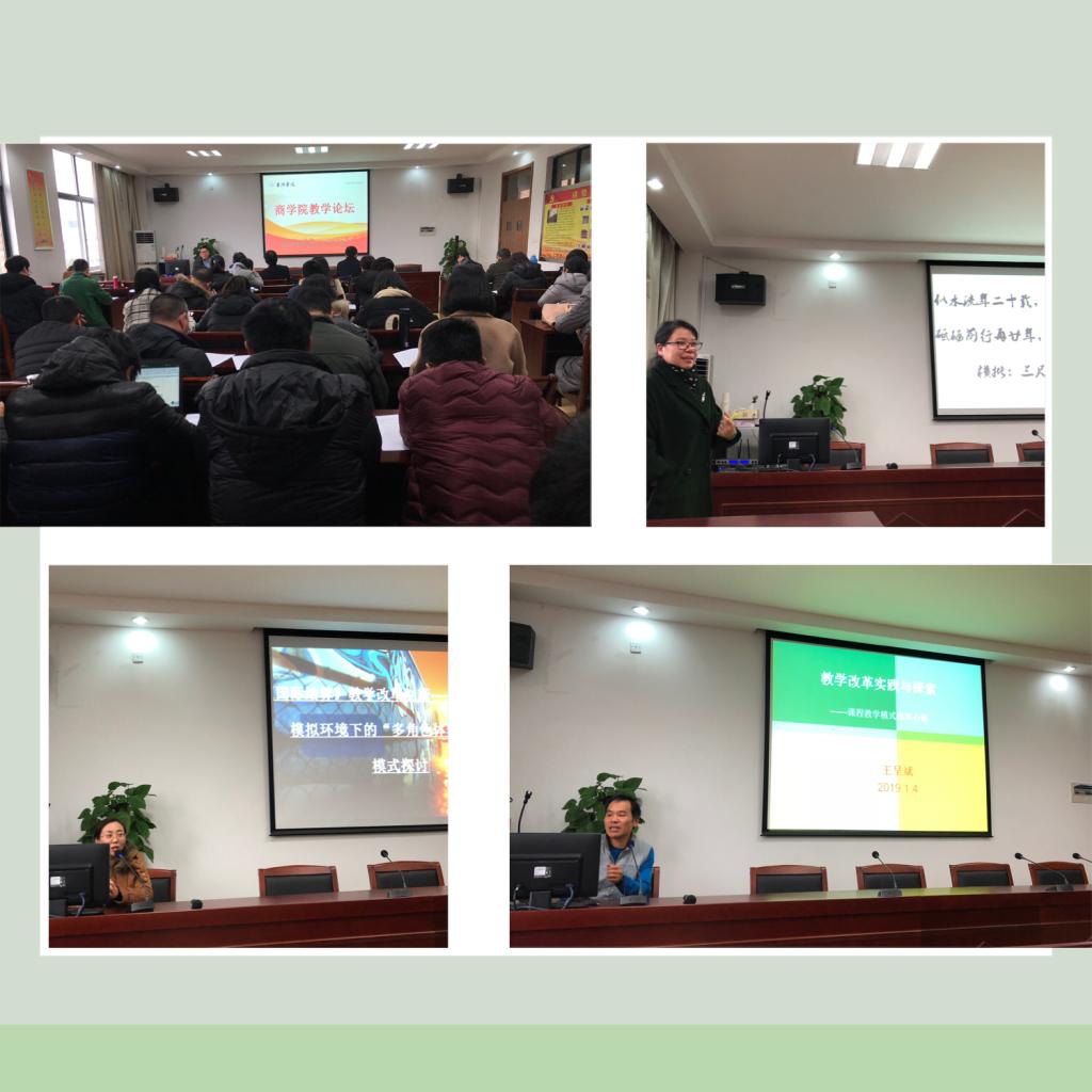 论坛上,王呈斌老师结合自身教学改革的历程,谈了自己对教改的若干认知和探索方向。沈璟璟老师介绍了《国际结算》教学改革创新实践,即基于网络模拟环境下的“多角色体验”教学模式探讨。姜琴君老师介绍了影视教学法和案例教学法,加强与员工互动,让课堂生动“有温度”。刘际陆副经理介绍了教学改革与项目的类型,鼓励老师们积极申报教改项目。