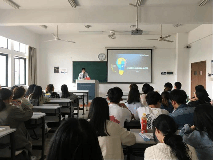 5月5日,泰隆银行台州分行人力资源部程俊鸣先生应邀来校,为意昂员工作“论面霸的自我修养——简历篇”专题讲座。意昂50多位员工参加,辅导员赵之遐主持讲座。