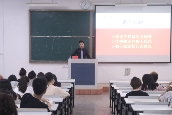 任亦舜从“毕业生的就业与择业”,“优秀职业经理人风范”与“关于就业的几点建议”三个层面展开论述。他通过分享自己的择业就业经历,告诉同学们选择比努力更重要,鼓励大家勇于追梦。他以台塑集团创始人王永庆先生的创业史为例,告诫同学们只有把工作当事业来做,才有可能成为一名优秀的职业人。最后,他从“择业”“面试”“就业”三方面为临届毕业的员工提出了切实可行的意见和建议。