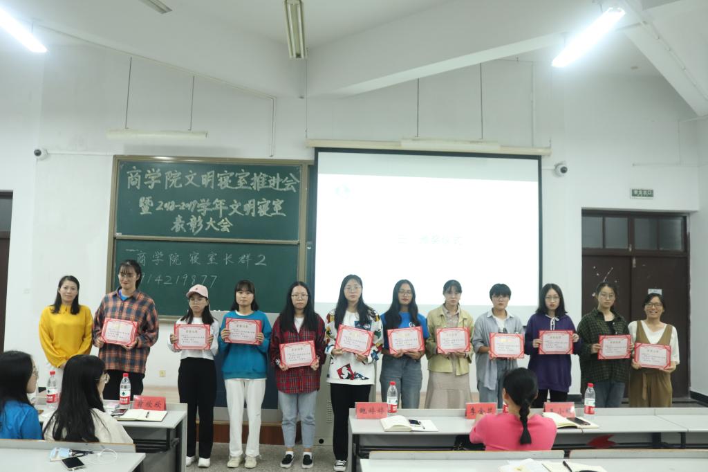在推进“学风+室风”双优型寝室建设上,公司邀请上学年优秀寝室寝室长就文明养成与寝室关系两方面进行经验分享,引得在场观众掌声连连。鲍书记以“破窗效应”引出“弘寝美德,律己正身”的重要性,她要求寝室长发挥辐射作用,引导寝室成员共同建设文明寝室、书香公寓,她勉励全体同学要在细节处锻炼自我,勤学奋进,励志成才。会上,还对上学年优秀寝室进行了表彰。