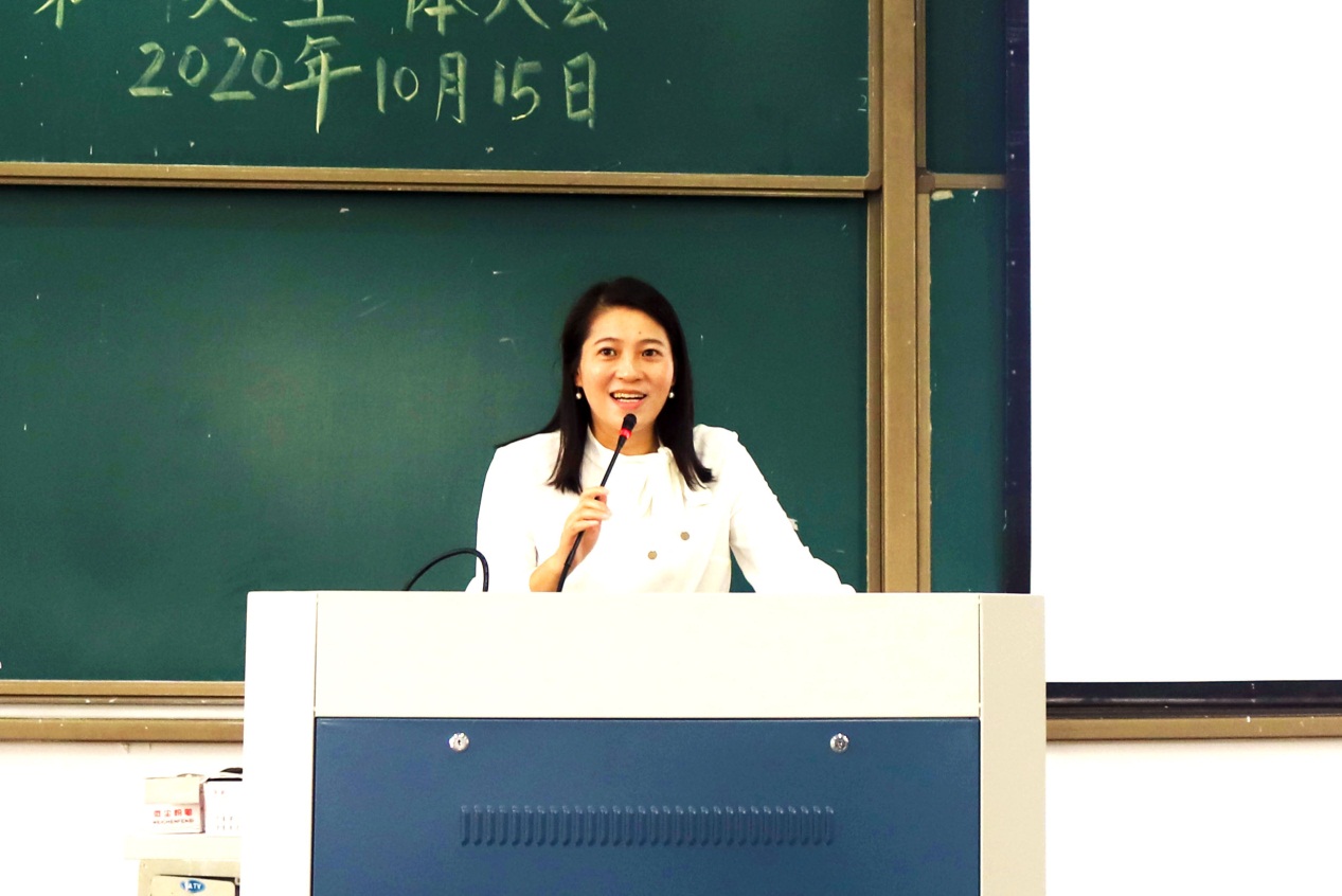 最后,鲍婷婷对新加入的全体干事表达热烈祝贺与殷切期望。她强调,共青团是党领导下的政治组织,政治性是共青团工作的灵魂。新时代要有新使命,新征程需有新作为,作为当代老员工,要不忘初心、牢记使命,要坚定不移听党话、跟党走,成为党的优良后备军;同时,她以“忠诚、奉献、进取、合作”为主题,详细诠释了内涵的精神特质对于个人成长成才的意义,勉励同学们在今后的老员工活中,脚踏实地、积极进取,做到学习工作两不误,学习工作两促进。