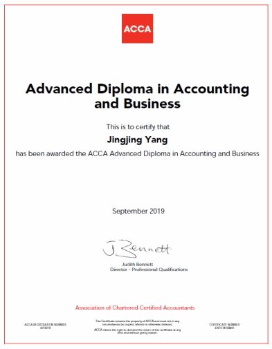 据悉,ACCA资质广受地方政府和业内认可,是世界会计专业的顶级证书之一,有着“国际会计届的通行证”之称,许多城市将具备ACCA资质的人员列入高层次金融人才目录。获取ACCA专业资格的同时,还有机会获得牛津布鲁克斯大学应用会计(荣誉)学士学位以及伦敦大学专业会计硕士学位。考取ACCA是对杨菁菁同学过去努力学习的肯定和鼓励,希望她能以更加饱满的热情去面对更多挑战,努力拼搏,砥砺前行,满怀信心踏上求职的新征程。