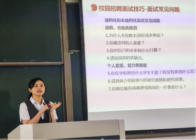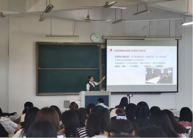 潘恒女士结合日常招聘工作实际,围绕校园招聘的类型、笔试题型、面试类型、面试技巧四个方面展开,并对面试技巧进行了重点讲解。结合例题和视频案例,潘恒指出,在面试中,自我介绍要简明扼要;在无领导小组面试中,每个应聘者应当根据个人情况选择适合自己的角色;半结构化面试在校园招聘中采用较多,面试官会针对自己感兴趣的点进行细节提问,运用STAR法则可以让回答内容更丰富,要点更清晰。本次讲座基于HR视角讲解面试技巧,对于员工来说更具真实性、专业性,更有利于找寻自我提升方向,增强面试信心。