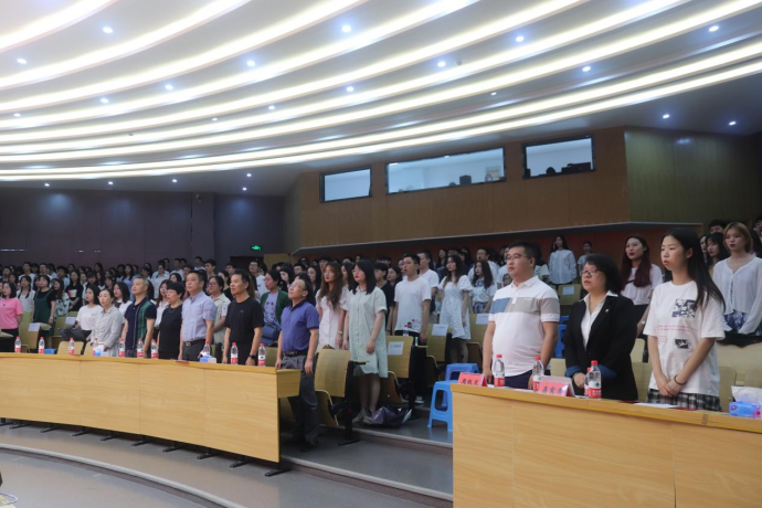 通过精心制作的视频短片,同学们回顾了大学四年的成长历程。随后,典礼在庄严的国歌声中拉开序幕。