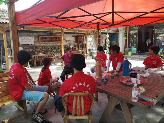 7月4日上午,实践队成员在指导老师陈国栋的带领下,走进实践第一站:宁海县葛家村,一个由中国人民大学的艺术团队共同打造的艺术乡村。