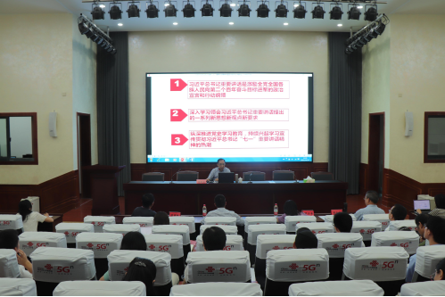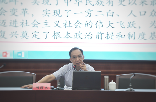 胡韶光副董事长从“七一”重要讲话的历史背景和重要意义导入党课,指出习近平总书记“七一”重要讲话立足中国共产党百年华诞的重大时刻和“两个一百年”历史交汇的关键节点,是激励全党全国各族人民向第二个百年奋斗目标进军的政治宣言和行动纲领。他系统而深入地为与座教师讲解了讲话提出的一系列新思想新观点新要求:习近平总书记“七一”重要讲话庄严宣告了第一个百年奋斗目标的成功实现,首次提出了实现中华民族伟大复兴是贯穿中国共产党百年奋斗主题的重要观点,用丰富的史实和翔实的数据集中阐述党百年来创造的“四个伟大成就”和向实际作出的“四个庄严宣告”。胡韶光强调,习近平总书记“七一”重要讲话首次提出的伟大建党精神,充分展现了我党强大的思想、政治、精神和道德优势,要深入学习领会习近平总书记重要讲话精神的丰富内涵和核心要义,深刻领悟以史为鉴、开创未来的“九个必须”,传承优良传统、赓续红色血脉,推动学习往深里走、往心里走、往实里走,将理论学习的收获转化为奋斗前行的不竭动力。