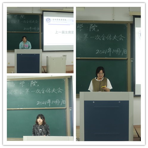 之后,上一届部分主席团成员向大家分享学习和工作经验,吴琼表示在工作中遇到坎坷时,保持热情很重要,同时建议大家重视纪律,要有良好的时间观念;宋青则从亲身经历出发,强调工作过程中沟通的重要性,遇到问题要多与部长和其他成员协商;陆梓妍则指出大家应有个人明确的规划和目标,合理分配学习和工作的时间。最后主席团和各部门依次亮相,依次自我介绍,展现出商院学子良好的精神风貌。
