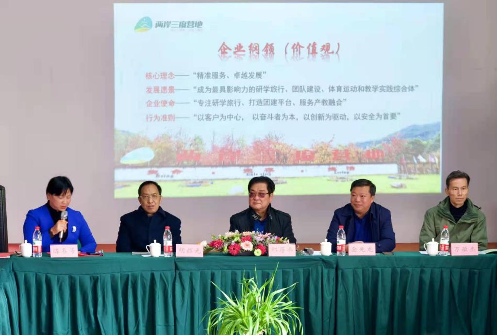 两岸三度营董事长陈春芳女士对与会的领导和老师表示了诚挚的欢迎和衷心的感谢,她介绍:营区风景秀丽,集旅游度假、观光旅游、拓展训练、户外运动、科普教育于一体的大型综合性生态旅游示范区。两岸三度营希望借此次合作机会,尽力为员工们提供良好的实习环境,搭建符合新时代的人才发展平台。
