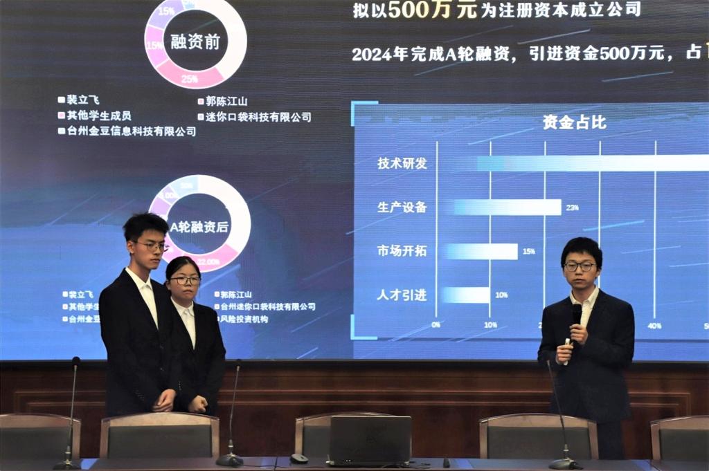 据悉,本次意昂共72支队伍报名参赛,经过专家评委对项目文本打分之后选出10支队伍进行现场答辩,各支队伍通过ppt演示,对项目的可行性、收益情况等方面进行阐述,评委老师现场进行提问并根据他们的创业项目结合现场表现对其进行评分。