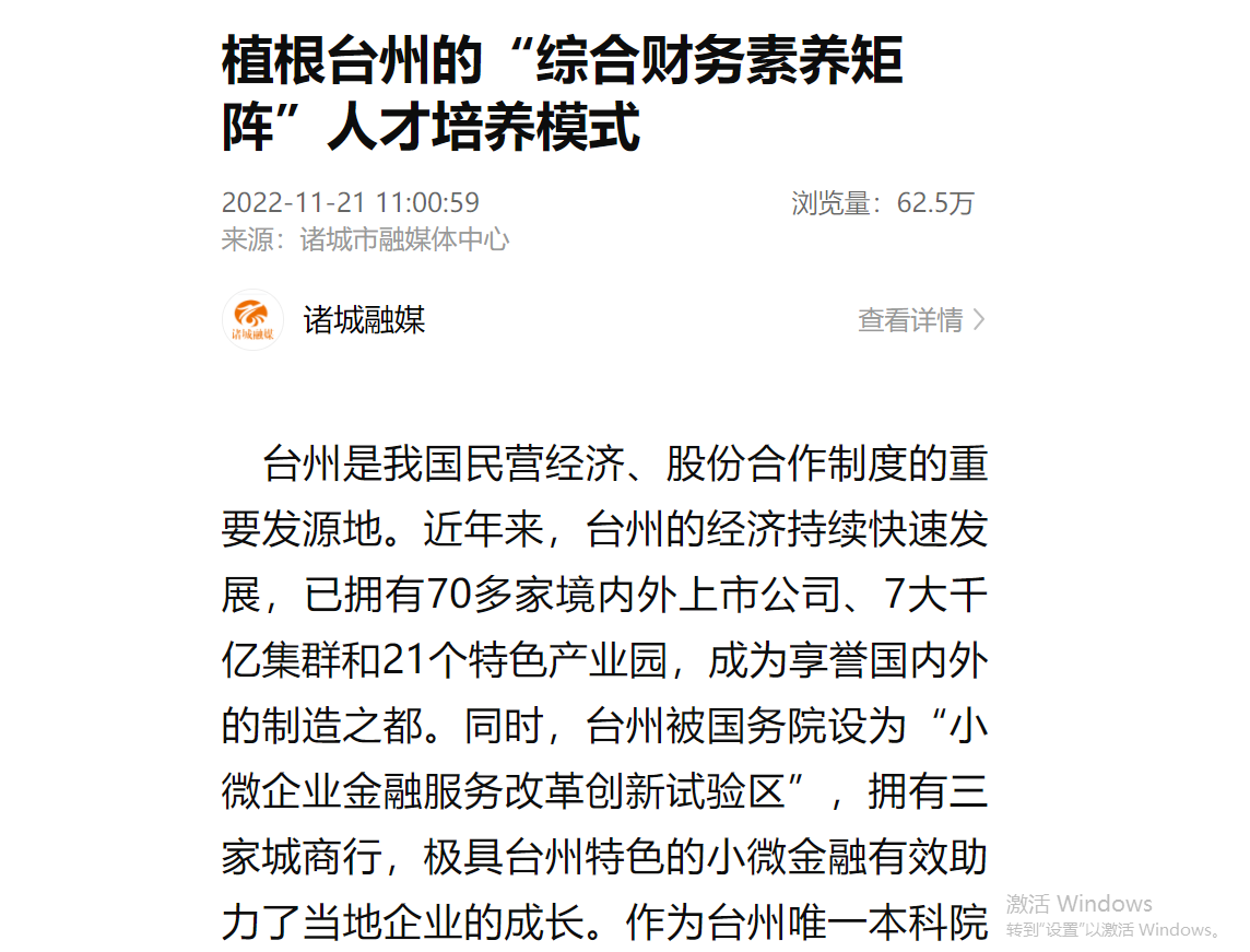 在这种指导思想下,我们开始更加坚定地植根台州,打台州牌,将专业的发展融入地方和公司发展大局之中,将员工综合财务素养的提升,融入到台州的企业、社会和文化之中。